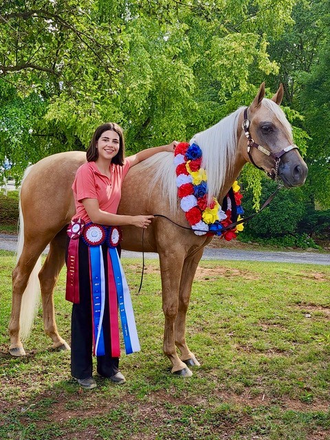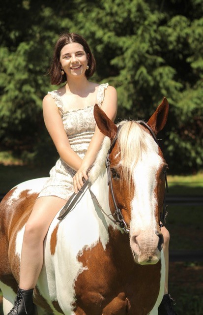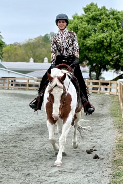 Hello! My name is Harper Cadotte, I am a western dressage youth competitor. I earned the second WDAA Youth Educational Scholarship. While my show season has not yet started, I look forward to using this scholarship to further my education and horsemanship. I hope to use the scholarship to attend a clinic hosted by Lynn Newton in late August. This will be my second year of showing western dressage on my lease of three years Tommy. Tommy is a registered American Paint Horse and at sixteen is still the goofiest boy. We have continued to learn together and are progressing through the levels together. He will now be showing level One in addition to Basic this show season. Additionally, I have been riding a half Arabian half quarter horse mare named Cece and developing her education under saddle, she is currently three and will be making her entrance into western dressage at Intro level this show season alongside Tommy. This scholarship will help me further my education with both of these special horses and better educate me in western dressage.
